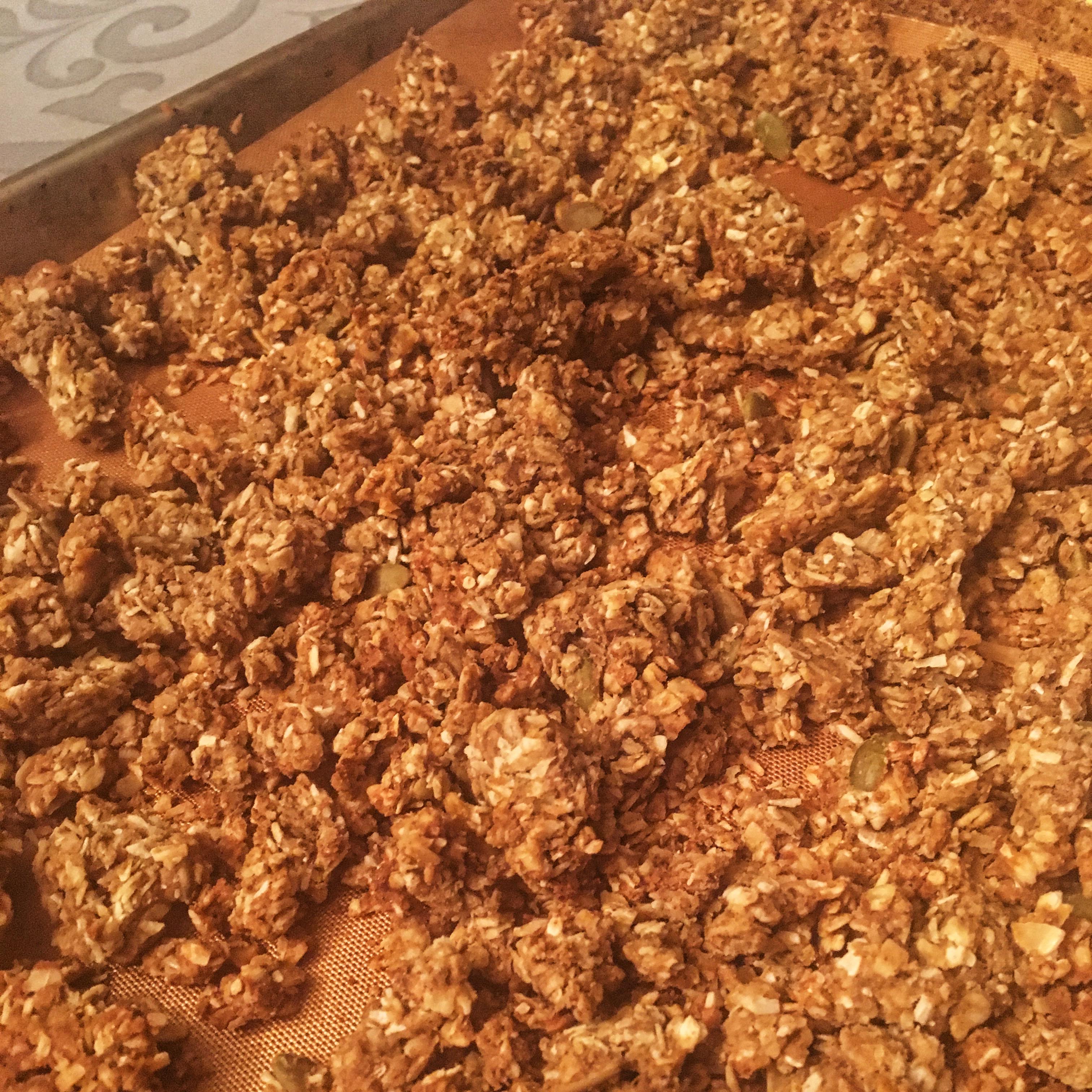 This simple granola turned out so delicious. I’m thrilled to be able to eat it on top of my coconut yogurt or smoothie bowls!